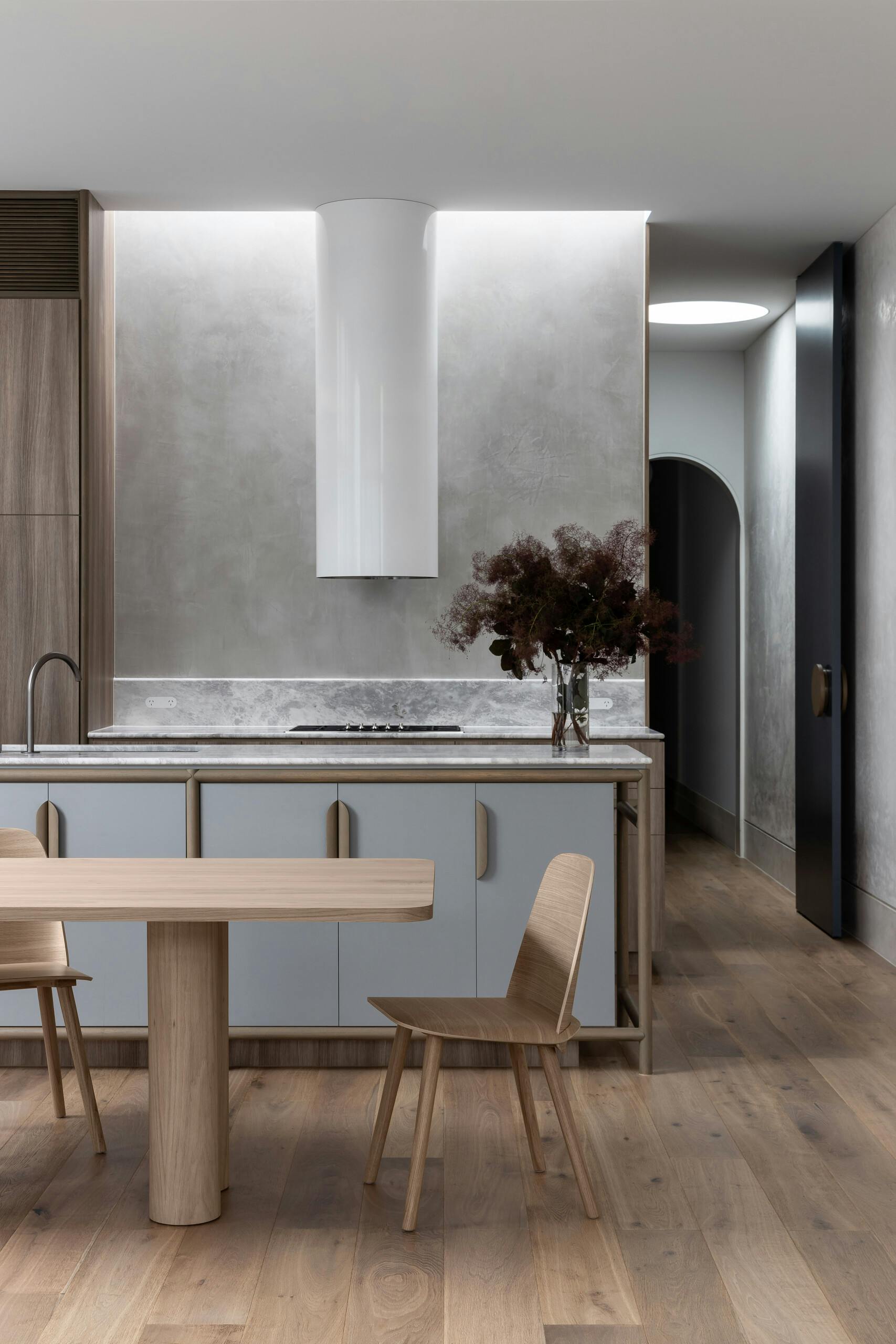 Situated in Ripponlea, Melbourne, Kiwi is a charming Edwardian-era home blending heritage with modernity. Its single-level layout emphasises quality over quantity, seamlessly connecting with the landscape. A sun-washed courtyard offers tranquillity, while inside, wabi-sabi philosophies celebrate imperfection. Original features are meticulously restored with a contemporary sensibility, utilising locally sourced materials such as European oak, natural stone, and concrete to create an honest and authentic atmosphere. Kiwi dissolves the boundaries between past and present, embodying a home that honours its heritage while embracing modern living with understated elegance and elemental expressions.